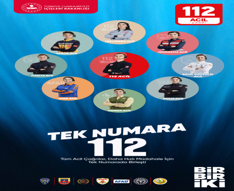 Türkiye genelinde Emniyet, Sağlık, Jandarma, İtfaiye, AFAD, Orman ve Sahil Güvenlik birimlerine ait tüm acil çağrılar, artık "Tek Acil Durum Numarası 112" üzerinden karşılanmaktadır.